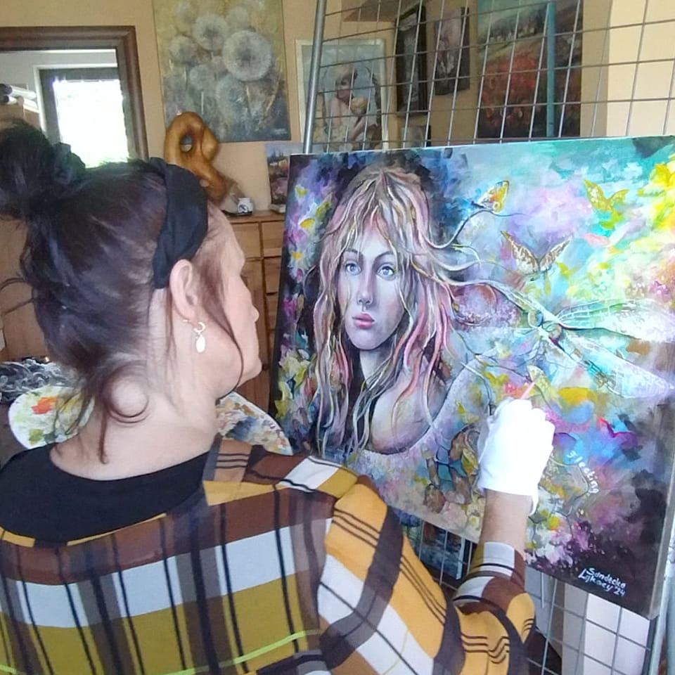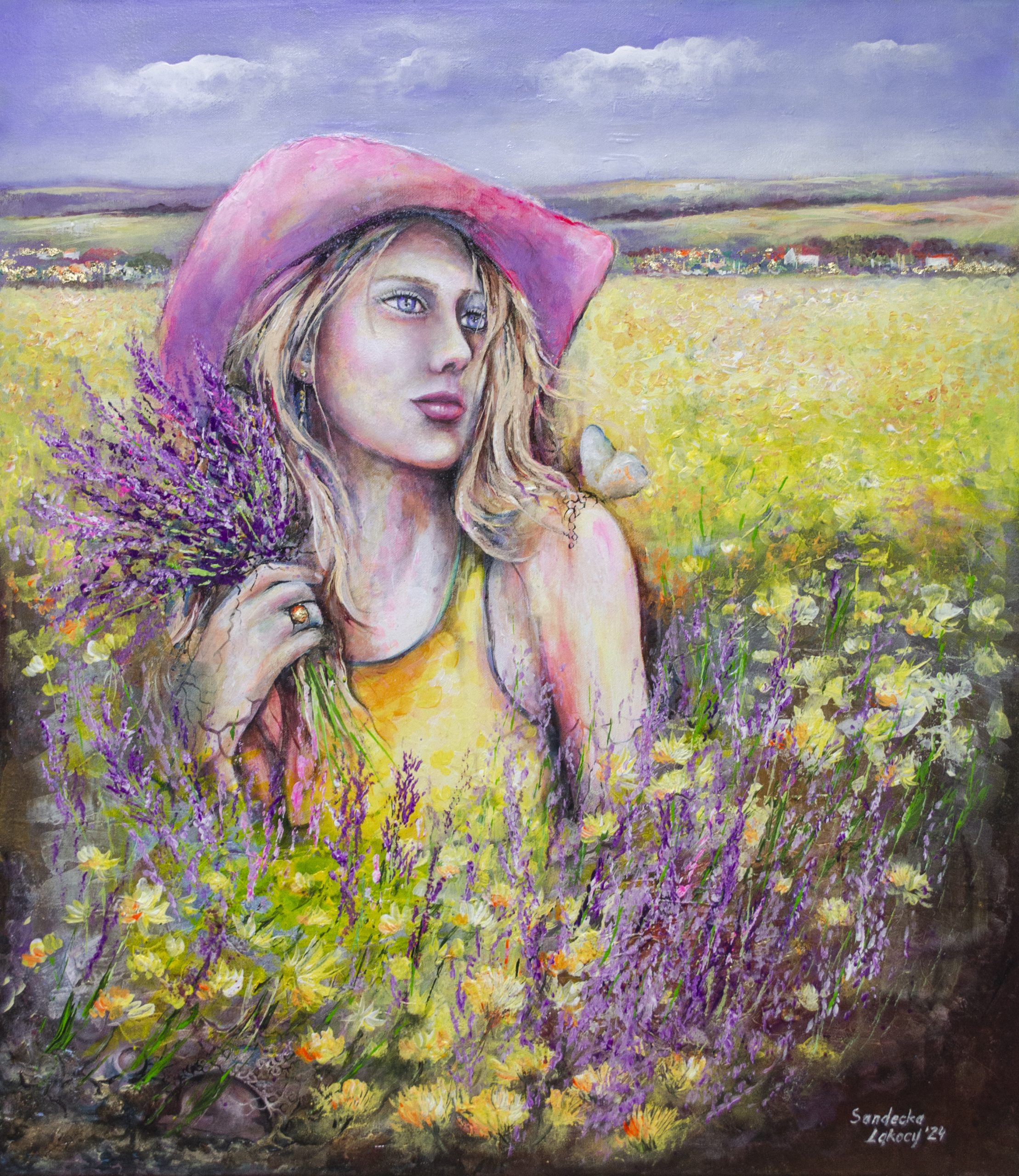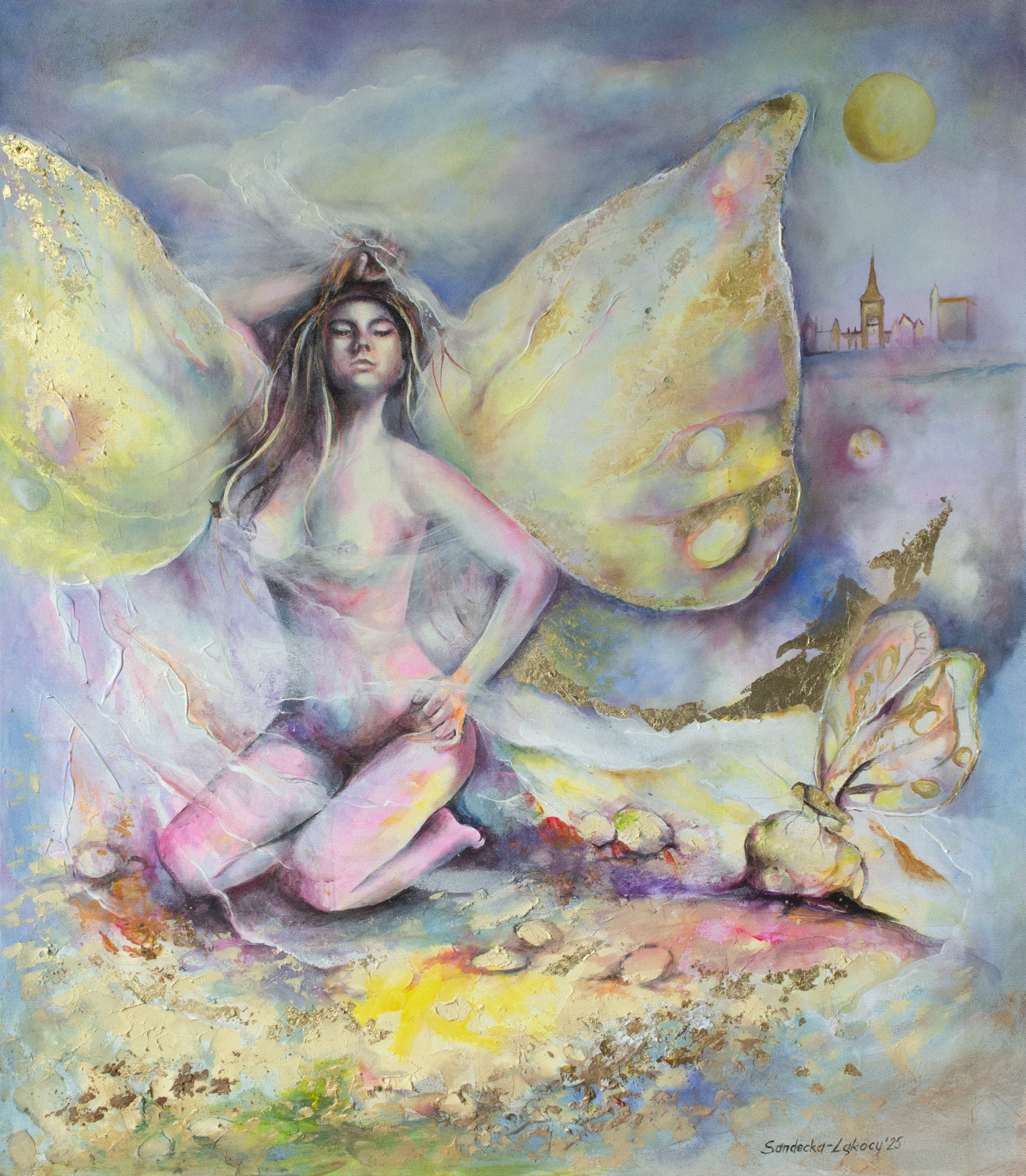 Kobieta w moim malarstwie odgrywa szczególną rolę. Delikatna ale jednocześnie silna, zazwyczaj w otoczeniu roślin, kwiatów ,zwierząt, motyli. Czasem gniewna, walcząca o swoje prawa I należne miejsce czy godność, czasem kochająca bez granic naturę, faunę czy florę.
