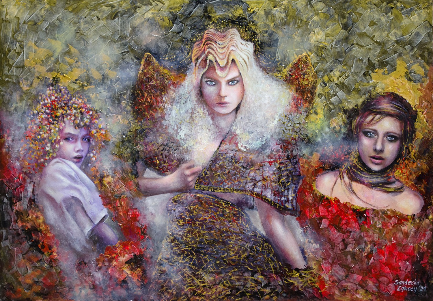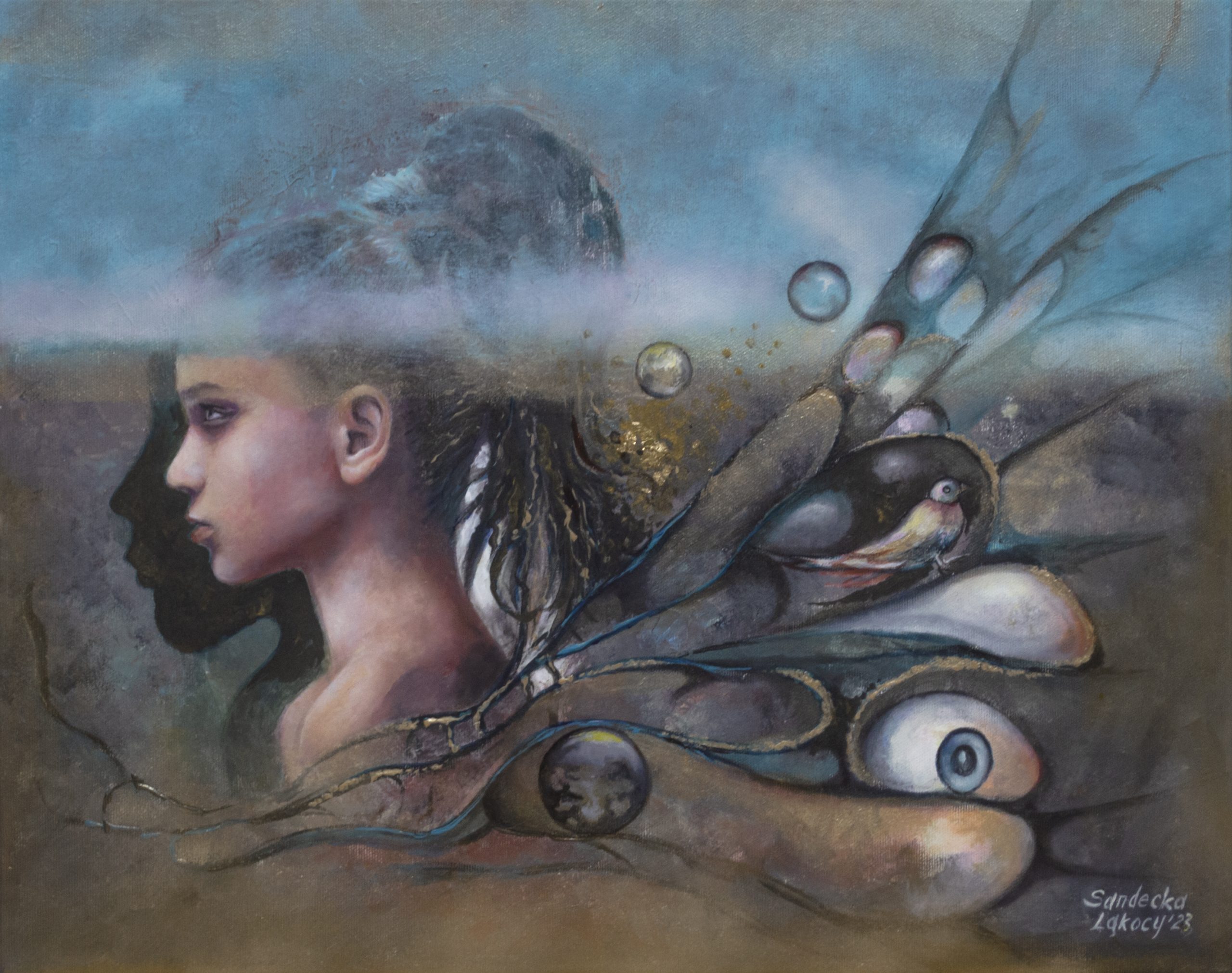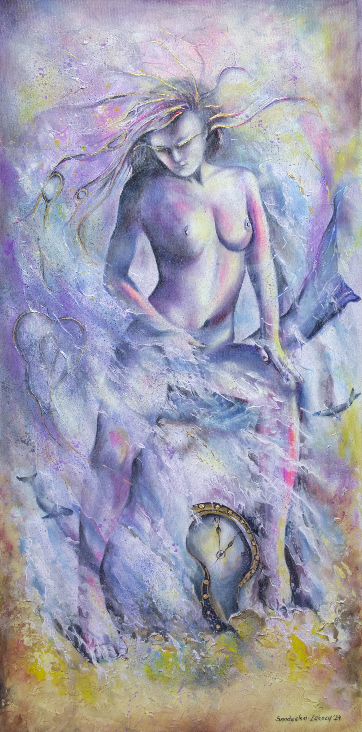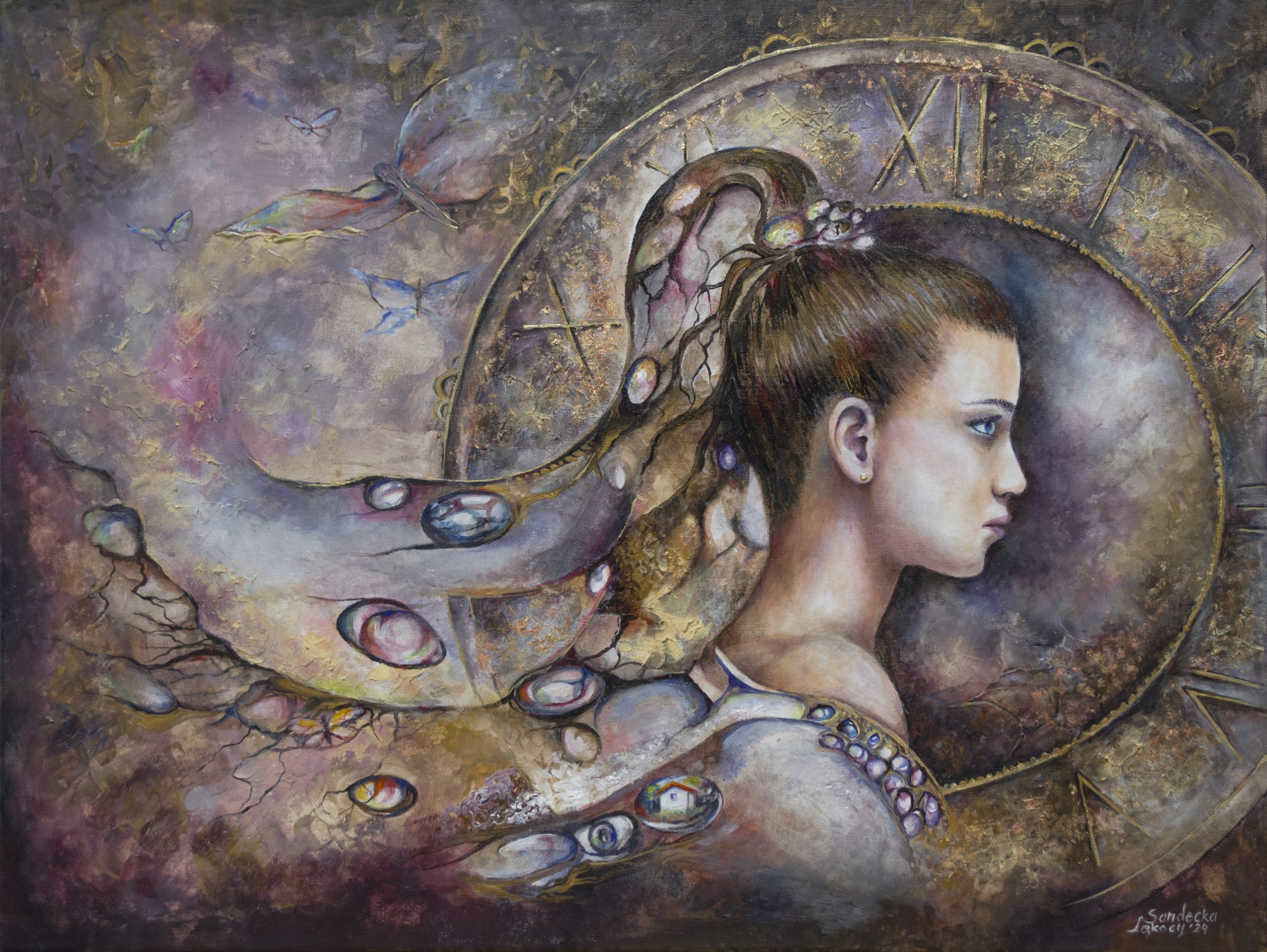 Kobieta w moim malarstwie odgrywa szczególną rolę. Delikatna ale jednocześnie silna, zazwyczaj w otoczeniu roślin, kwiatów ,zwierząt, motyli. Czasem gniewna, walcząca o swoje prawa I należne miejsce czy godność, czasem kochająca bez granic naturę, faunę czy florę.
